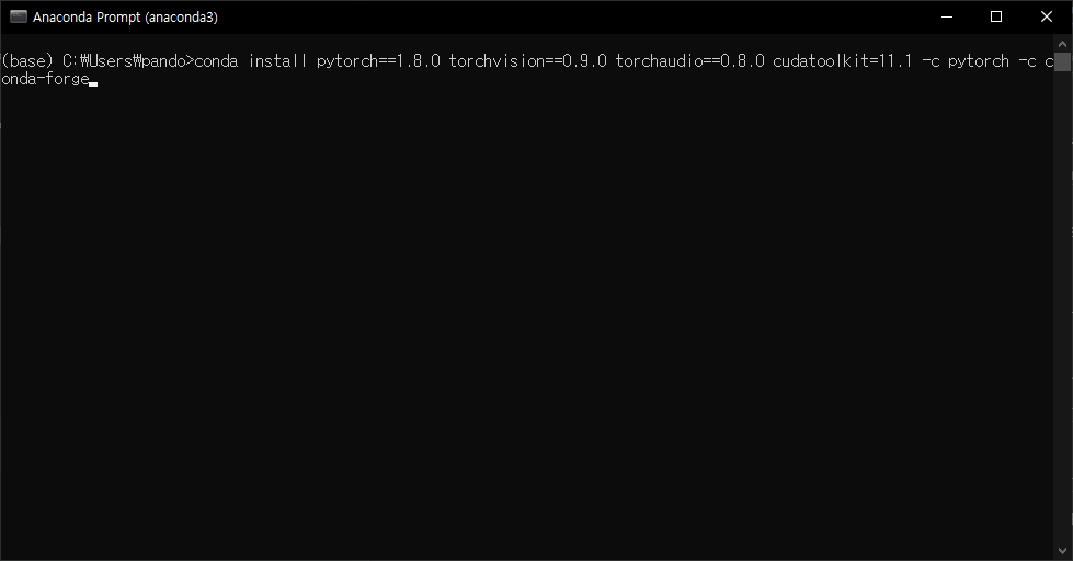 https://pytorch.org/get-started/previous-versions/ - 명령어를 찾은 경우, pip나 conda의 명령창에 명령어를 입력한다.